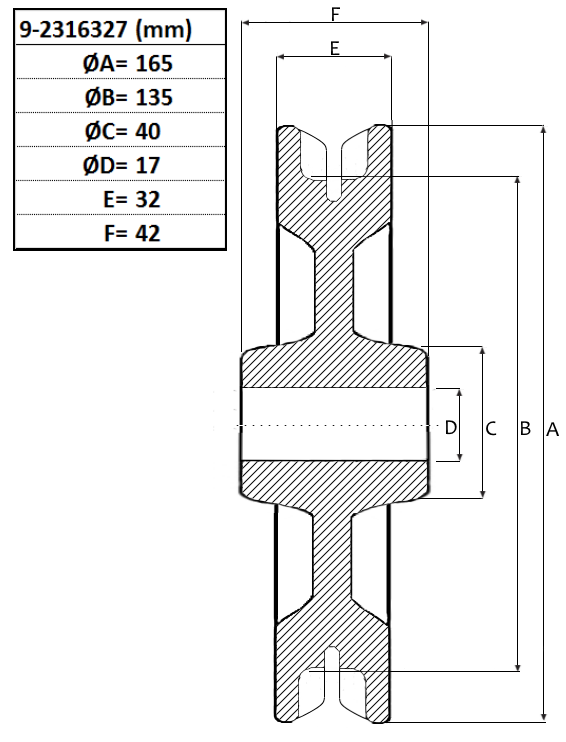 SVEROs hand chain wheel with Ø 165 mm. For chain dimension 5 x 18.5 mm. Weight 5.7 kg.