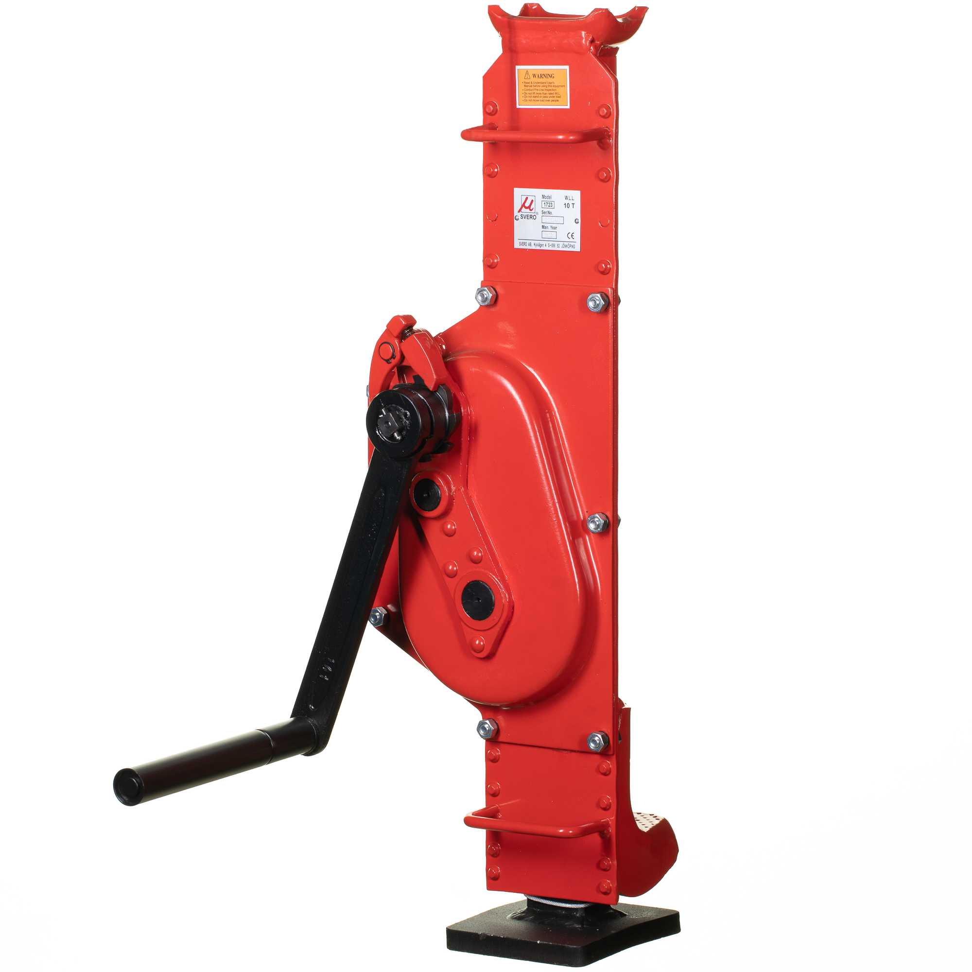 SVERO jack 1723. The crank is collapsible and lifting can take place both on top and heel. It is also self-locking and has double pawls for increased safety.