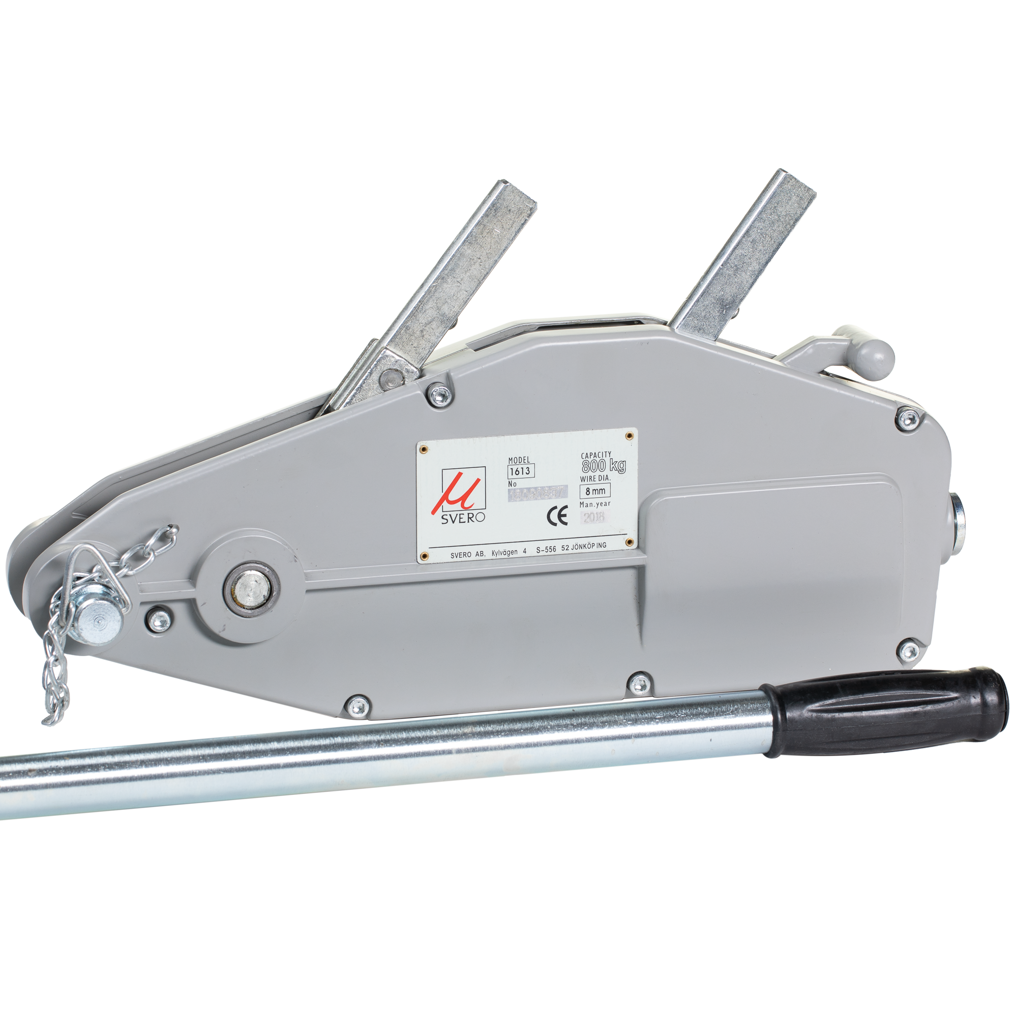 You use SVERO pulling winch in aluminum for lifting and pulling and for tightening a wire rope. The wire rope is controlled by the double locking device that keeps it tight throughout the lift or pull. Removable handle for easy handling.