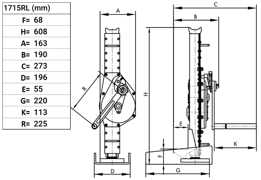 SVERO railway jack 1715. Larger base plate so as not to sink into the ground. The crank has a locking function and is collapsible. Lifting can take place both on top and heel. It is also self-locking and has double pawls for increased safety.
