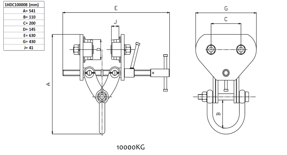 Balkklämma 10 000 kg, justerbar med hjul