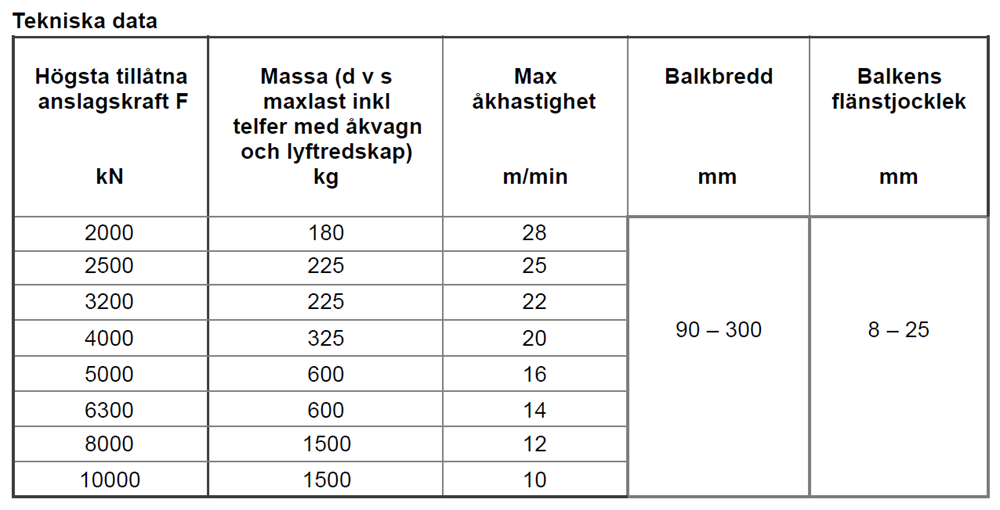 Balkstopp max kraft 10000 kg, 90-300 mm