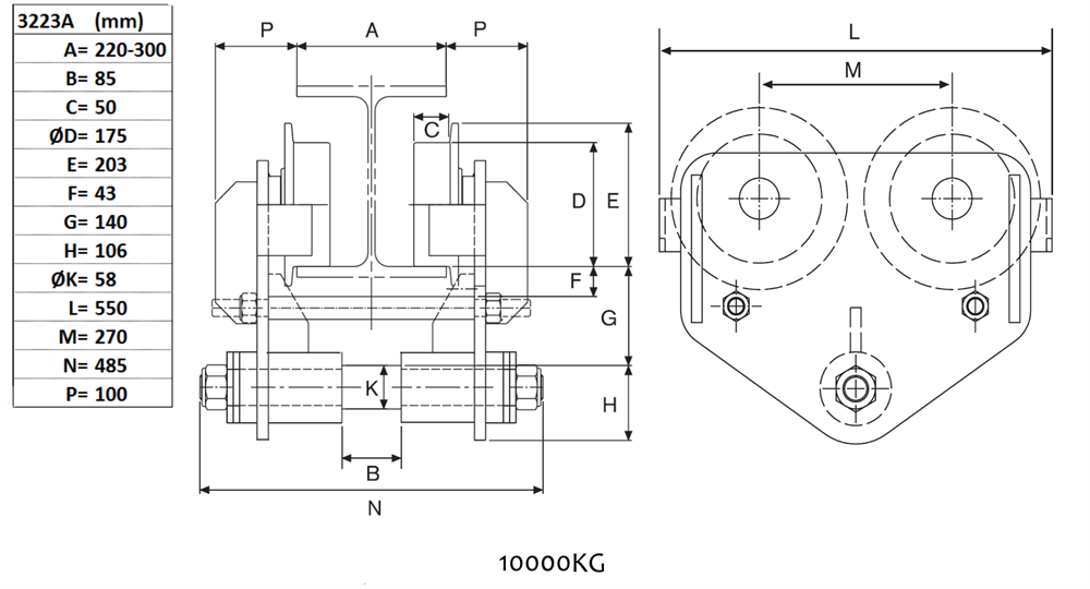 Balkvagn 10 000 kg, 220-300 mm