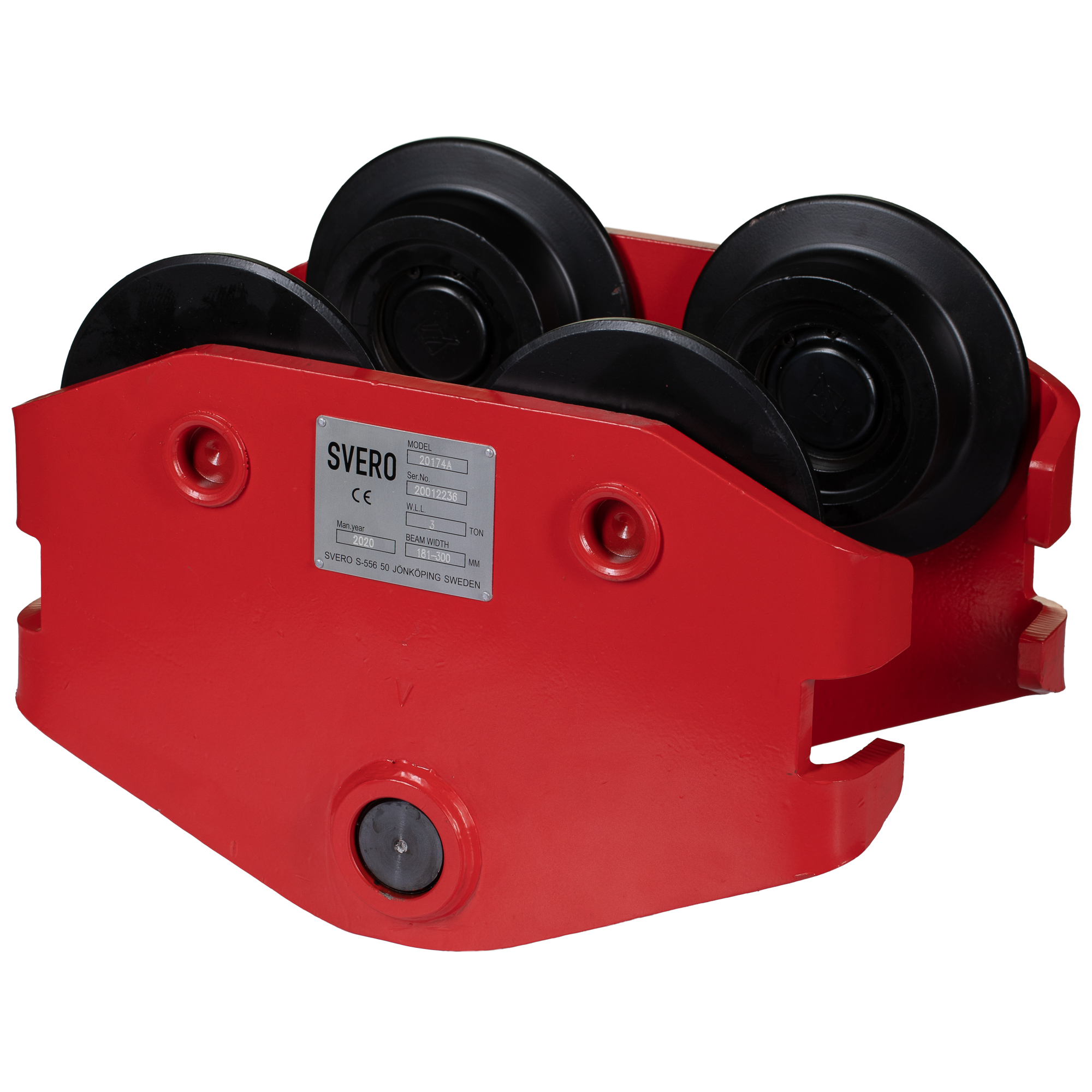 SVERO’s extra breda balkvagn/blockvagn 3000 kg. För tyngre industri, där balkarna ofta är lite bredare, och exempelvis underhåll och service av större maskiner. Den lågbyggda 3-delade konstruktionen är lätt att montera.