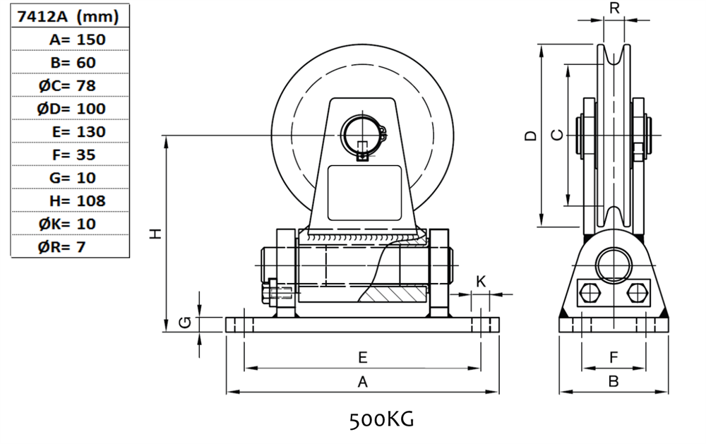 - elförzinkad hållare och pulverlackerat linhjul