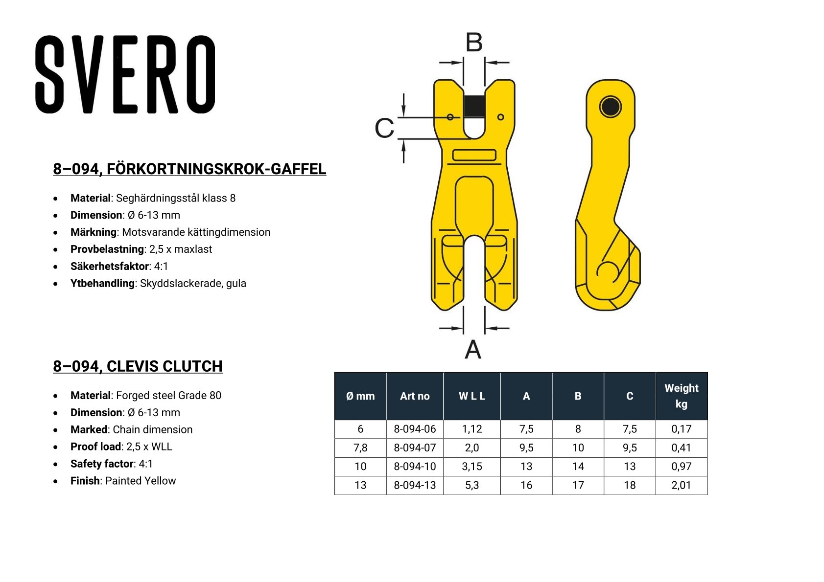 Förkortningskrok-Gaffel, 1120 kg, 6 mm