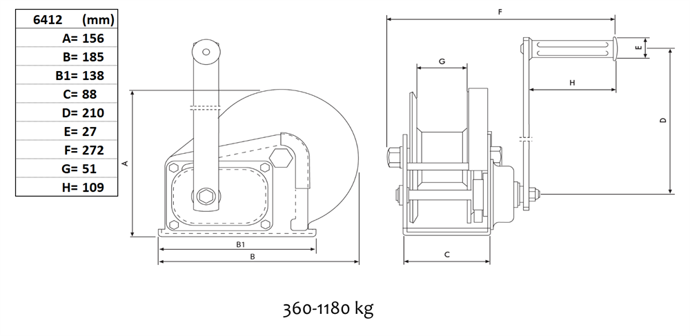 +46(0)36 316570Handvinsch med automatisk broms 540 kg, utan vajer