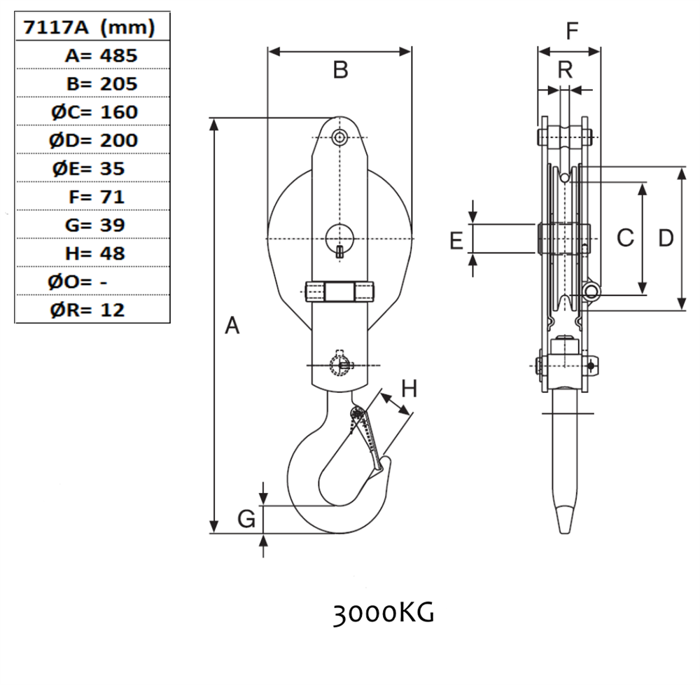 Kastblock 3000 kg, Ø 200 mm
