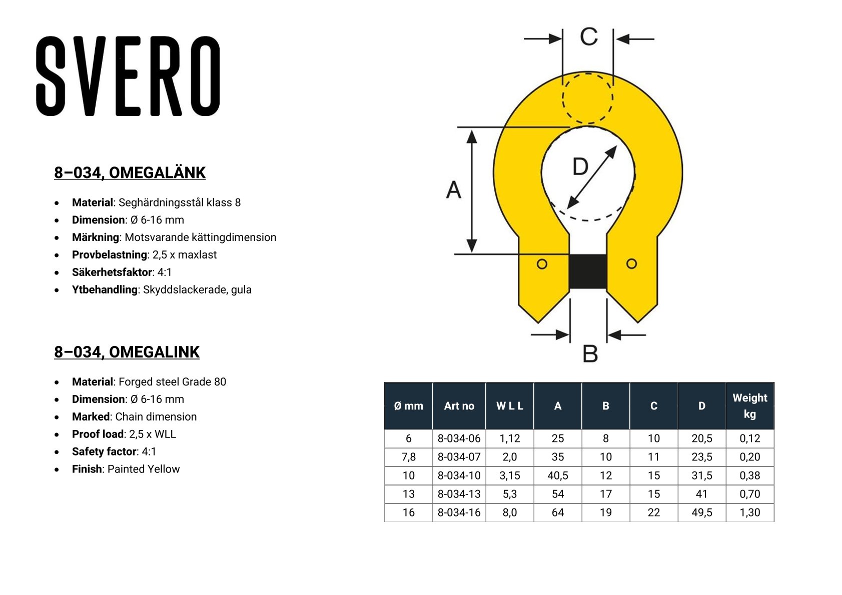 Omegalänk, 2000 kg, 7/8 mm