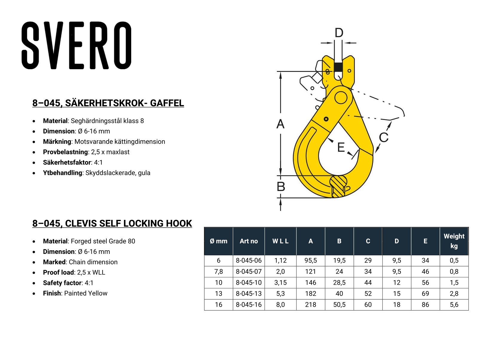 Säkerhetskrok-Gaffel, 2000 kg, 7/8 mm