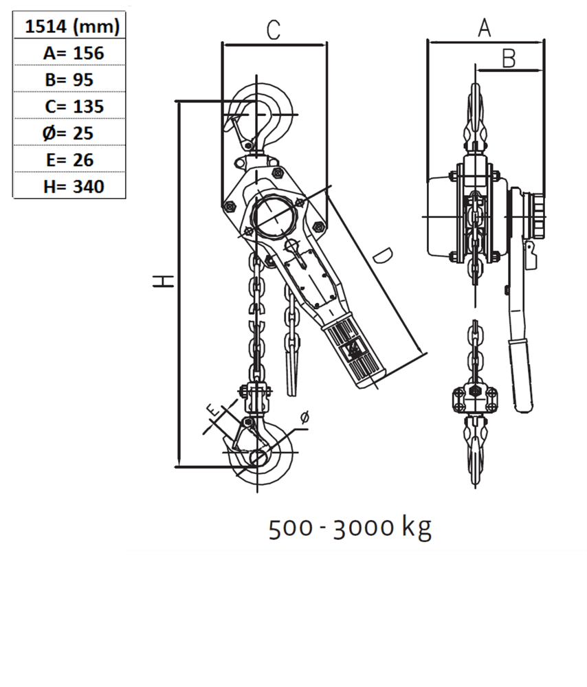Spaklyftblock 1000 kg, lyfthöjd 1,5 m - med överlastskydd
