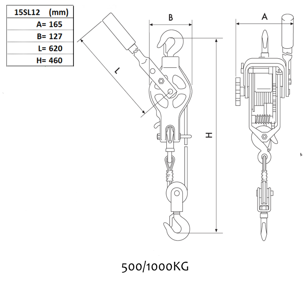 Spaklyftblock 500/1000 kg - med vajer