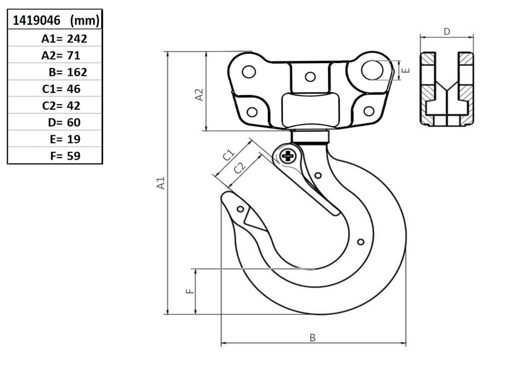Toppkrok med spärr, 14, 5000 kg